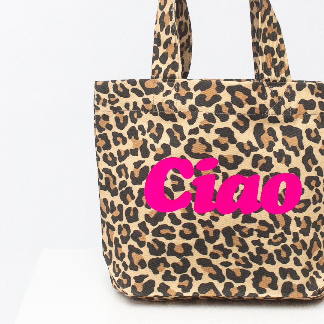 This compact cotton bag stands out with bold leopard print, making it a stylish everyday accessory. Its lightweight design is perfect for carrying small essentials while adding a touch of wild elegance to any look.