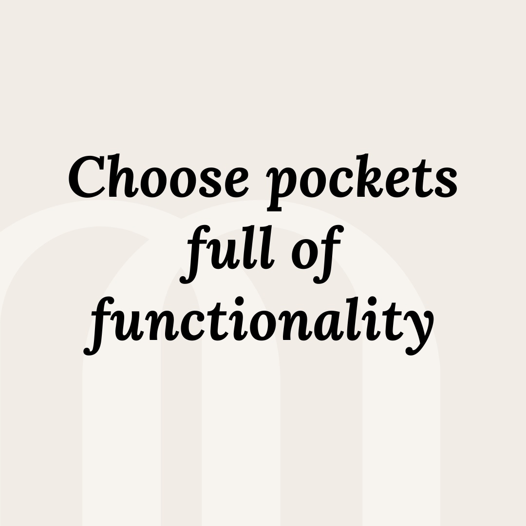 To increase the security of stored items, pockets can be equipped with zippers or snaps, effectively preventing the contents from accidentally falling out. They protect valuable items from falling out or being stolen.