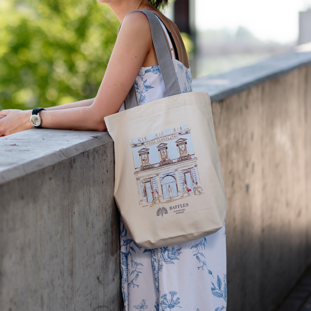 The elegance and class of Raffles Warsaw deserved a unique solution. We created the TM01 model for them, featuring thick handles and made from durable drill fabric. With a screen-printed design, the bag perfectly reflects the brand’s luxurious character while serving as a practical accessory for guests.
