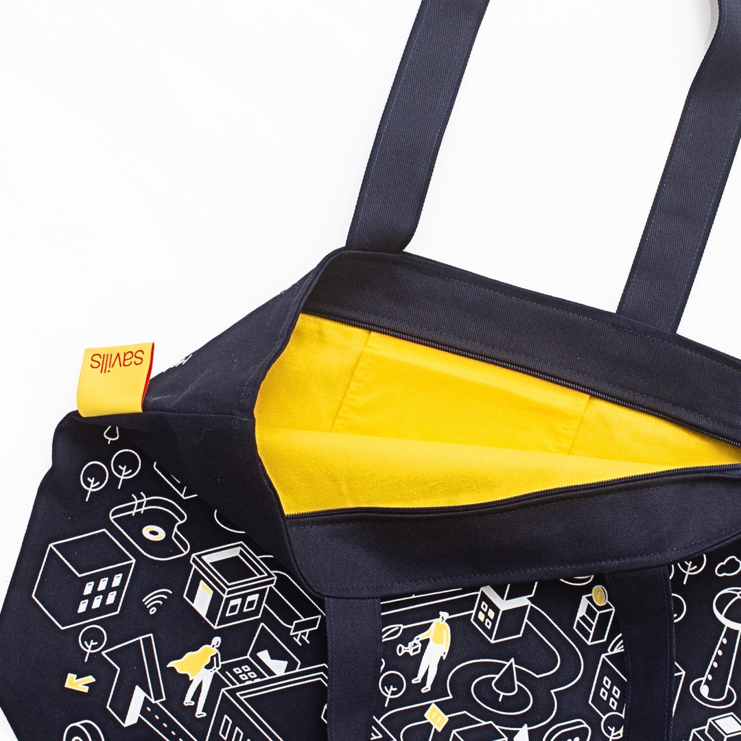 SAVILLIS, a leader in the real estate industry, commissioned us to create exceptional bags that became the perfect gift for their employees. The classic navy-blue twill with a weight of 280 g serves as a durable and elegant base – an ideal combination for a company with high standards.