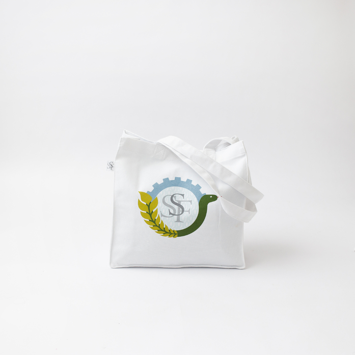 A white bag made from durable Panama fabric, designed in a custom size for SSF. Topstitched sides enhance its exceptional durability and refined finish.