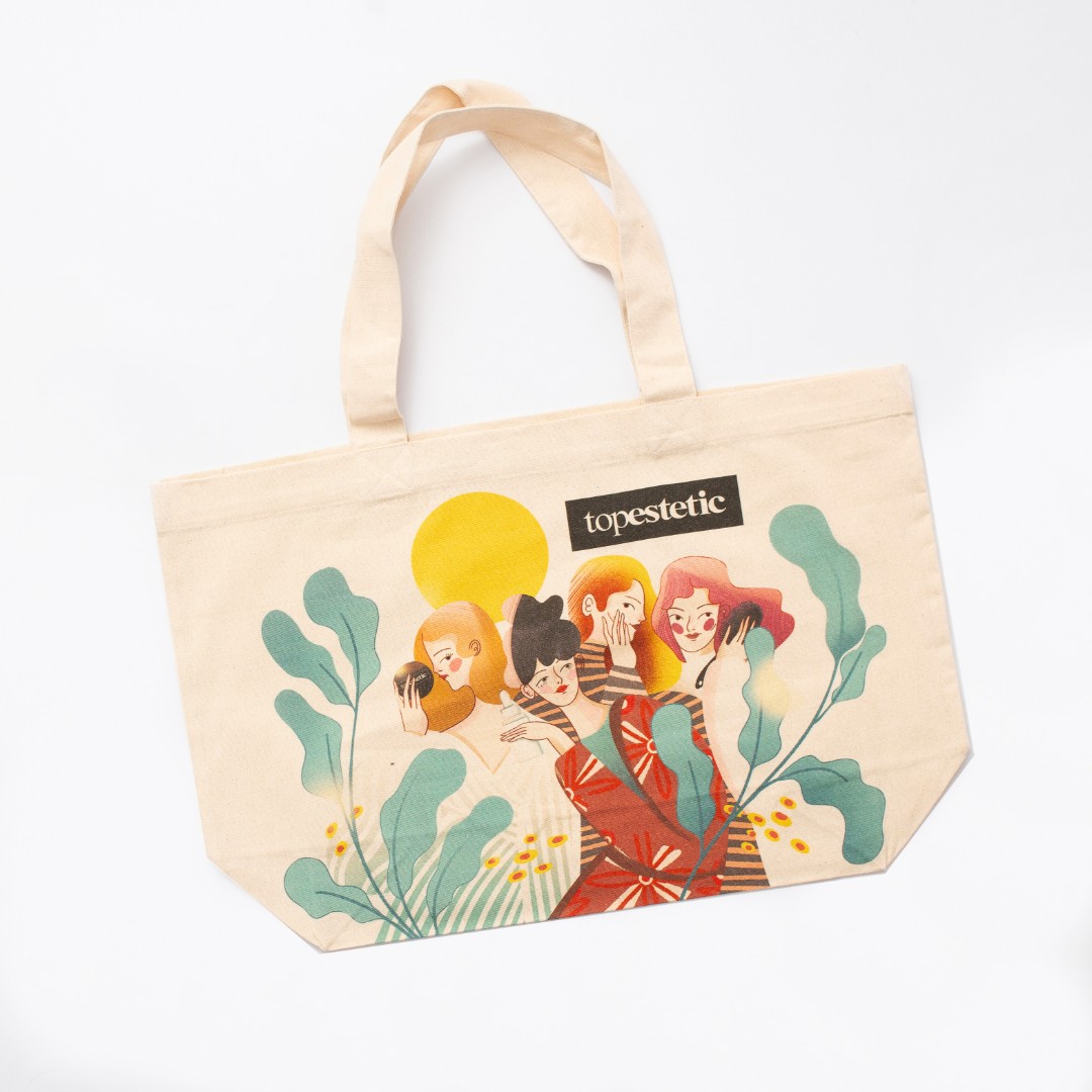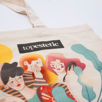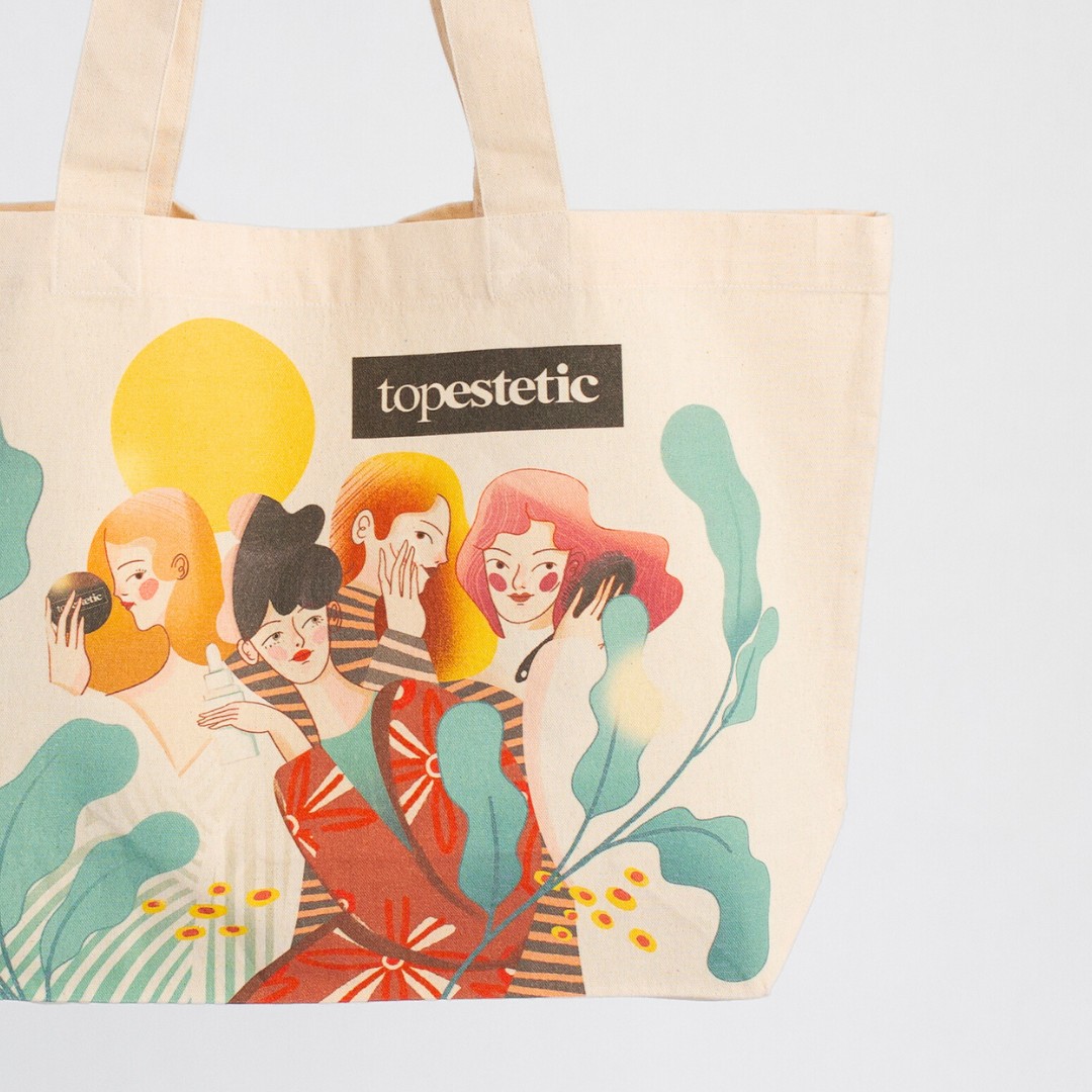 With natural beauty enthusiasts in mind, we created a 100% eco-friendly cotton shopper bag for the Topestetic brand. Made from organic cotton in a natural shade, with a bold DTT print, it is perfect for carrying cosmetics purchased in the store.