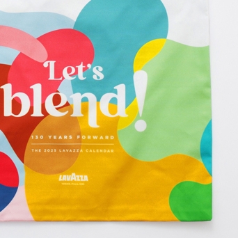 The brand promotes a diversity of flavors and creativity, as exemplified by the Lavazza 2025 anniversary Calendar promoting the slogan "Let’s blend."